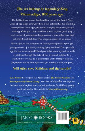 Meanwhile, in our own time, an adventure begins for Atisa, the teenage owner of a time-travelling flying machine! On a peaceful night in the snow-capped Himalayas, Atisa hears mysterious wails of distress through his state-of-the-art sound-catcher. In a whirlwind of events, he is transported to the midst of ancient Pataliputra and its imbroglio over the missing scrolls and poet.
