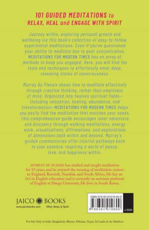 Murray du Plessis shows how to meditate effectively through creative thinking, rather than emptiness of mind. Organized into twelves spiritual fields—including relaxation, healing, abundance, and transformation—MEDITATIONS FOR MODERN TIMES helps you easily find the meditation that matches your needs. This comprehensive guide encourages inner adventure and discovery through walking meditations, energy work, visualizations, affirmations, and explorations of dimensions both within and beyond. Murray’s guided commentaries offer colorful pathways back to your essence, inspiring a world of peace, love, and happiness within.