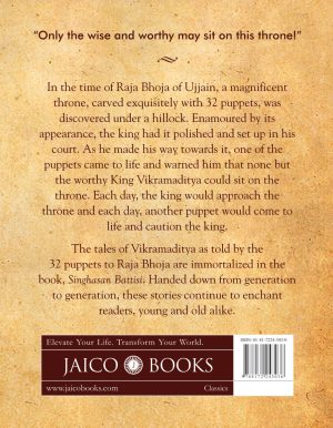 The tales of Vikramaditya as told by the 32 puppets to Raja Bhoja are immortalized in the book, Singhasan Battisi. Handed down from generation to generation, these stories continue to enchant readers, young and old alike.