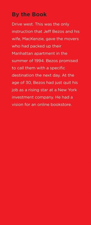 Drive west. This was the only instruction that Jeff Bezos and his wife, MacKenzie, gave the movers who had packed up their Manhattan apartment in the summer of 1994. Bezos promised to call them with a specific destination the next day. At the age of 30, Bezos had just quit his job as a rising star at a New York investment company. He had a vision for an online bookstore.