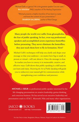 Michael Gelb’s techniques will help you clarify and shape your message so that your audience—no matter how big or small, in person or virtual—will care about it. Once the message is clear, he teaches you how to convey it in memorable, creative, and effective ways. Gelb shows that public speaking is a skill anyone can learn and enjoy. Mastering the Art of Public Speaking will guide you to rediscover your natural gift for communication while strengthening your confidence and presence