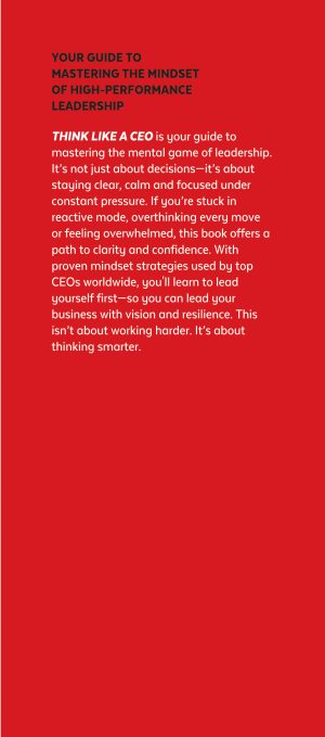 THINK LIKE A CEO is your guide to mastering the mental game of leadership. It’s not just about decisions—it’s about staying clear, calm, and focused under constant pressure. If you’re stuck in reactive mode, overthinking every move, or feeling overwhelmed, this book offers a path to clarity and confidence. With proven mindset strategies used by top CEOs worldwide, you’ll learn to lead yourself first—so you can lead your business with vision and resilience. This isn’t about working harder. It’s about thinking smarter.
