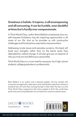 In Think World Class, author Brent Baldwin emphasizes how our self-imposed limitations may be impairing opportunities in all areas of our life. And so he provides us with constructive challenges and the directions required to overcome them.