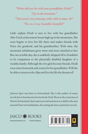 Little orphan Heidi is sent to live with her grandfather Alm-Uncle at his remote house high up in the mountains. She soon begins to love her life there and makes friends with Peter, the goatherd, and his grandmother. With time, the mountain inhabitants grow more and more attached to her. But one terrible day, she is suddenly shipped off to Frankfurt to be companion to the physically disabled daughter of a wealthy family. Although the two girls become friends, Heidi soon turns homesick and yearns for her grandfather. Will she be able to return to the Alps and live the life she dreams of?
