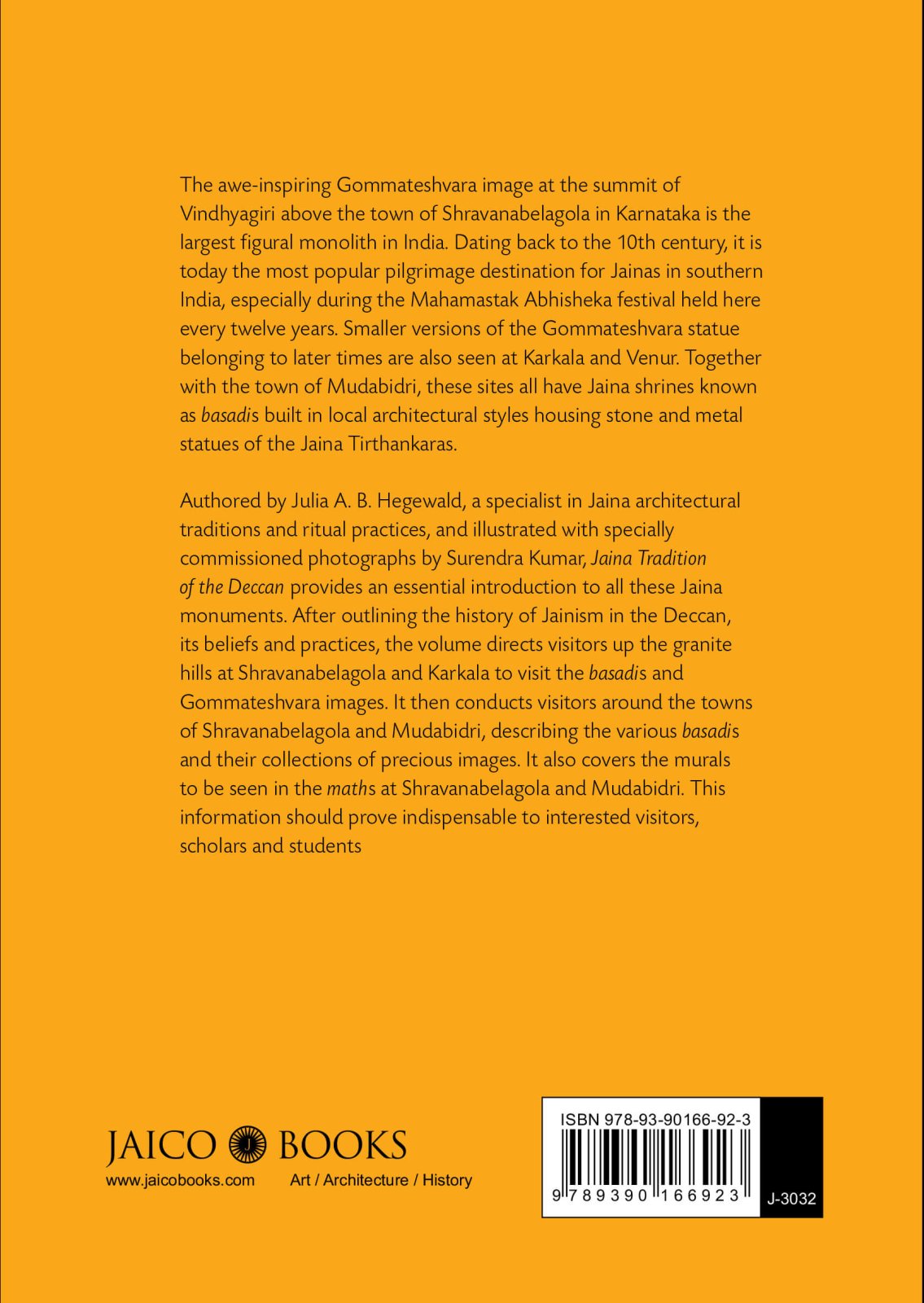 Authored by Julia A. B. Hegewald, a specialist in Jaina architectural traditions and ritual practices, and illustrated with specially commissioned photographs by Surendra Kumar, Jaina Tradition of the Deccan provides an essential introduction to all these Jaina monuments. After outlining the history of Jainism in the Deccan, its beliefs and practices, the volume directs visitors up the granite hills at Shravanabelagola and Karkala to visit the basadis and Gommateshvara images. It then conducts visitors around the towns of Shravanabelagola and Mudabidri, describing the various basadis and their collections of precious images. It also covers the murals to be seen in the maths at Shravanabelagola and Mudabidri. This information should prove indispensable to interested visitors, scholars and students.