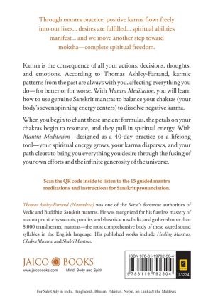 Scan the QR code inside to listen to the 15 guided mantra meditations and instructions for Sanskrit pronunciation.