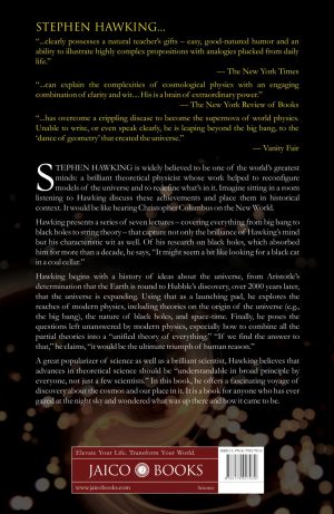 Hawking presents a series of seven lec-tures—covering everything from big bang to black holes to string theory—that capture not only the brilliance of Hawking’s mind but his characteristic wit as well. Of his research on black holes, which absorbed him for more than a decade, he says, “It might seem a bit like looking for a black cat in a coal cellar.”