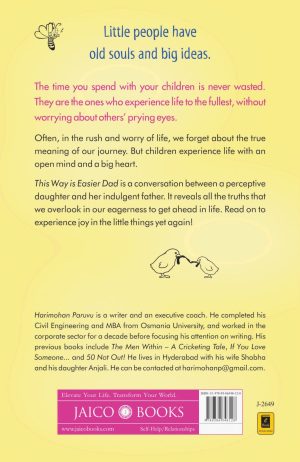 This Way is Easier Dad is a conversation between a perceptive daughter and her indulgent father. It reveals all the truths that we overlook in our eagerness to get ahead in life. Read on to experience joy in the little things yet again!