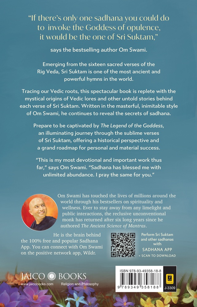 Tracing our Vedic roots, this spectacular book is replete with the mystical origins of Vedic lores and other untold stories behind each verse of Sri Suktam. Written in the masterful, inimitable style of Om Swami, he continues to reveal the secrets of sadhana.