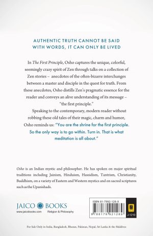 In The First Principle, Osho captures the unique, colorful, seemingly crazy spirit of Zen through talks on a collection of Zen stories – anecdotes of the often-bizarre interchanges between a master and disciple in the quest for truth. From these anecdotes, Osho distills Zen’s pragmatic essence for the reader and conveys an alive understanding of its message – “the first principle.”