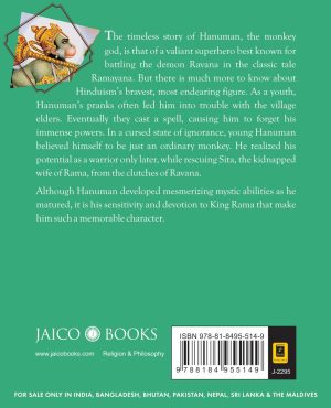 The timeless story of Hanuman, the monkeygod, is that of a valiant superhero best known for battling the demon Ravana in the classic tale Ramayana. But there is much more to know about Hinduism’s bravest, most endearing figure. As a youth, Hanuman’s pranks often led him into trouble with the village elders. Eventually they cast a spell, causing him to forget his immense powers. In a cursed state of ignorance, young Hanuman believed himself to be just an ordinary monkey. He realized his potential as a warrior only later, while rescuing Sita, the kidnapped wife of Rama, from the clutches of Ravana.