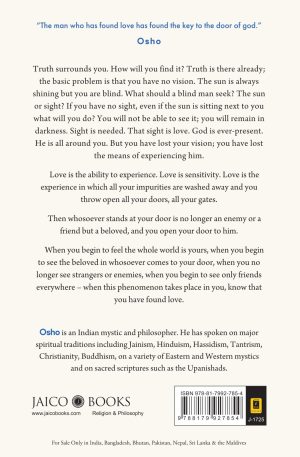 You go in search to the temples, to the mosques, to Kashi and to Mecca; you knock on every door you come across in the hope you will find what you have lost. But as long as you do not know exactly what it is you have lost your search cannot be fulfilled. Love is the ability to experience. Love is sensitivity. Love is the experience in which all your impurities are washed away and you throw open all your doors, all your gates. Then whosoever stands at your door is no longer an enemy or a friend but a beloved, and you open your door to him.