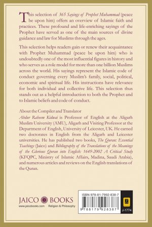 This selection of 365 Sayings of Prophet Muhammad (peace be upon him) offers an overview of Islamic faith and practices. These profound and life-enriching sayings of the Prophet have served as one of the main sources of divine guidance and law for Muslims through the ages.
