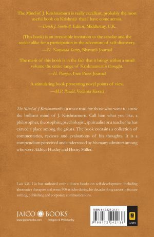 The Mind of J Krishnamurti is a must read for those who want to know the brilliant mind of J. Krishnamurti. Call him what you like, a philosopher, theosophist, psychologist, spiritualist or a teacher he has carved a place among the greats. The book contains a collection of commentaries, reviews and evaluations of his thoughts. It is a compendium perceived and understood by his many admirers among who were Aldous Huxley and Henry Miller.