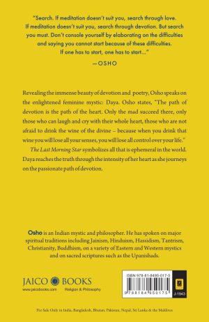 The last morning star symbolizes all that is ephemeral in the world. Talking on the playful and provocative poetry of Daya, Osho takes us on a journey from the transient, outer world to the eternal, boundless world within. This is a journey of the heart – the joyous, spontaneous, and at times uncompromising way of an enlightened woman mystic.