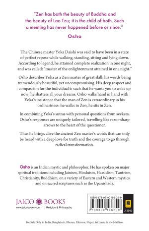 Osho describes Yoka as a Zen master of great skill; his words being tremendously beautiful, yet uncompromising. His deep respect and compassion for the individual is such that he wants you to wake up now; he shatters all your dreams. Osho walks hand in hand with Yoka’s insistence that the man of Zen is extraordinary in his ordinariness: he walks in Zen, he sits in Zen.