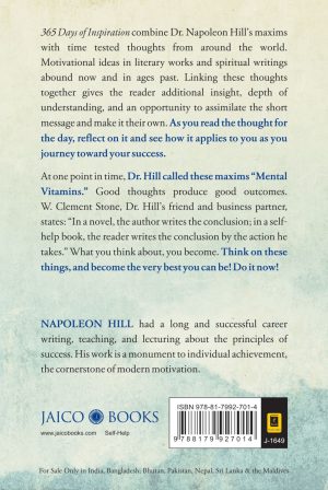 365 Days of Inspiration combine Dr. Napoleon Hill’s maxims with time tested thoughts from around the world. Motivational ideas in literary works and spiritual writings abound now and in ages past. Linking these thoughts together gives the reader additional insight, depth of understanding, and an opportunity to assimilate the short message and make it their own.