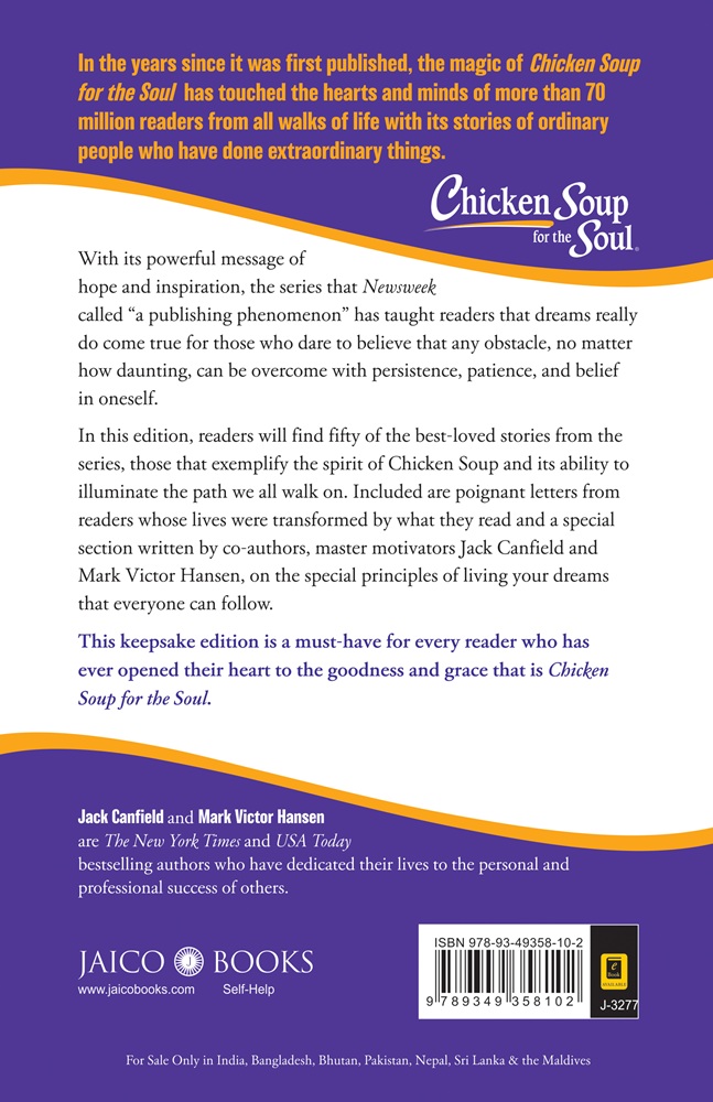 In this edition, readers will find fifty of the best-loved stories from the series, those that exemplify the spirit of Chicken Soup and its ability to illuminate the path we all walk on. Included are poignant letters from readers whose lives were transformed by what they read and a special section written by co-authors, master motivators Jack Canfield and Mark Victor Hansen, on the special principles of living your dreams that everyone can follow.