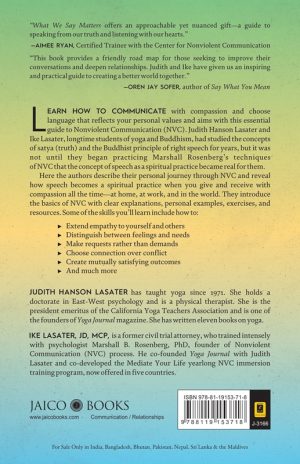 Larn how to communicate with compassion and choose language that reflects your personal values and aims with this essential guide to Nonviolent Communication (NVC). Judith Hanson Lasater and Ike Lasater, longtime students of yoga and Buddhism, had studied the concepts of satya (truth) and the Buddhist principle of right speech for years, but it was not until they began practicing Marshall Rosenberg’s techniques of NVC that the concept of speech as a spiritual practice became real for them.