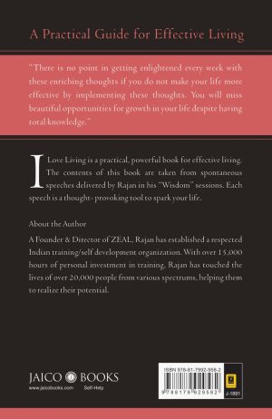 I Love Living is a practical, powerful book for effective living. The contents of this book are taken from spontaneous speeches delivered by Rajan in his “Wisdom” sessions. Each speech is a thought- provoking tool to spark your life.