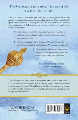 Stand Strong is the fourth book in Ramayana: The Game of Life series. A modern retelling of the Kishkindha Kanda of Valmiki’s epic, it reminds us through the tragic story of brothers Vali and Sugriva that life is like a dangerous treasure hunt. One must be resilient while running through confusing, zigzagging paths to acquire essential wisdom.