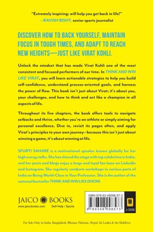Unlock the mindset that has made Virat Kohli one of the most consistent and focused performers of our time. In Think and Win Like Virat, you will learn actionable strategies to help you build self-confidence, understand process-oriented goals, and harness the power of flow. This book isn’t just about Virat; it’s about you, your challenges, and how to think and act like a champion in all aspects of life.