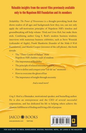 Stickability: The Power of Perseverance is a thought-provoking book that shows readers of all ages and backgrounds how they, too, can not only apply the self-motivation principles of Napoleon Hill’s timeless and groundbreaking self-help volume Think and Grow Rich, but make them stick. Combining author Greg S. Reid’s modern business wisdom; interviews with numerous business celebrities, such as Steve Wozniak (cofounder of Apple), Frank Shankwitz (founder of the Make-A-Wish Foundation), and Martin Cooper (inventor of the cell phone), this book reveals: