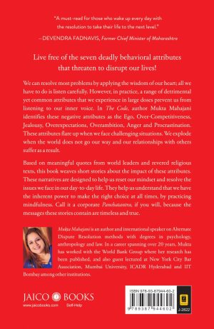 We can resolve most problems by applying the wisdom of our heart; all we have to do is listen carefully. However, in practice, a range of detrimental yet common attributes that we experience in large doses prevent us from listening to our inner voice. In The Code, author Mukta Mahajani identifies these negative attributes as the Ego, Over-Competitiveness, Jealousy, Overexpectations, Overambition, Anger and Procrastination. These attributes flare up when we face challenging situations. We explode when the world does not go our way and our relationships with others suffer as a result.