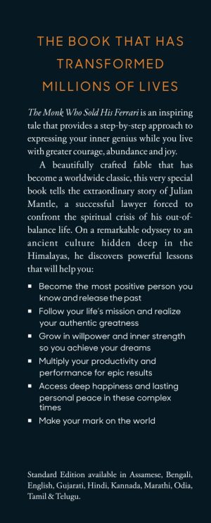 A beautifully crafted fable that has become a worldwide classic, this very special book tells the extraordinary story of Julian Mantle, a successful lawyer forced to confront the spiritual crisis of his out-of-balance life. On a remarkable odyssey to an ancient culture hidden deep in the Himalayas, he discovers powerful lessons that will help you: