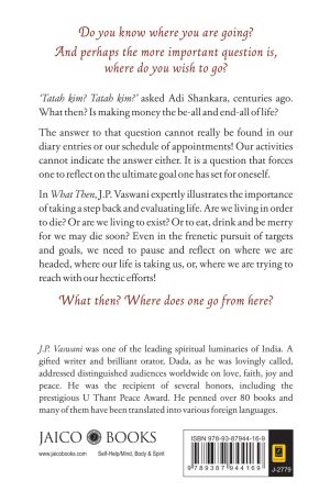 In What Then, J.P. Vaswani expertly illustrates the importance of taking a step back and evaluating life. Are we living in order to die? Or are we living to exist? Or to eat, drink and be merry for we may die soon? Even in the frenetic pursuit of targets and goals, we need to pause and reflect on where we are headed, where our life is taking us, or, where we are trying to reach with our hectic efforts!